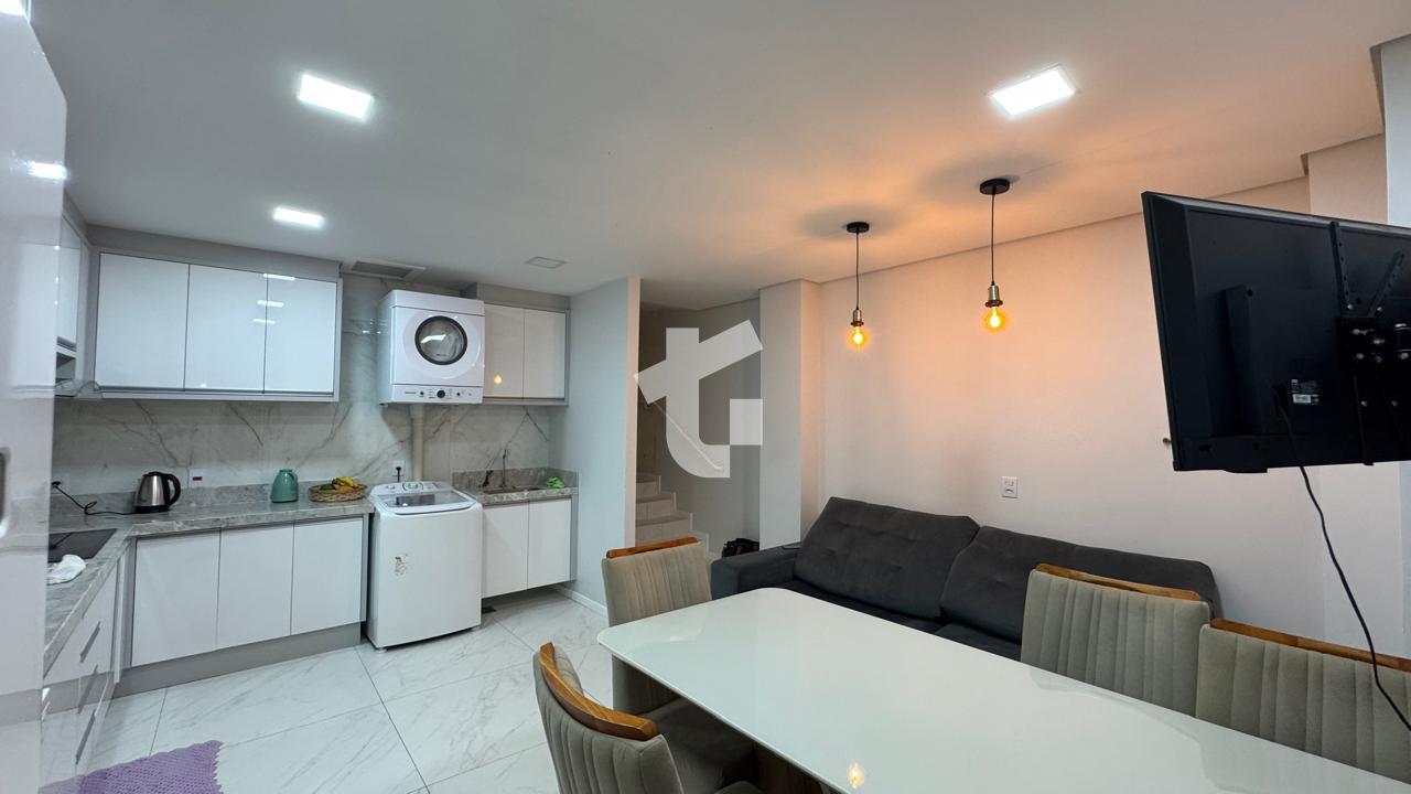 - Sala de jantar e cozinha integradas, com área de serviço